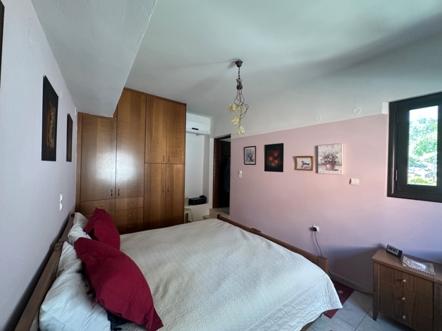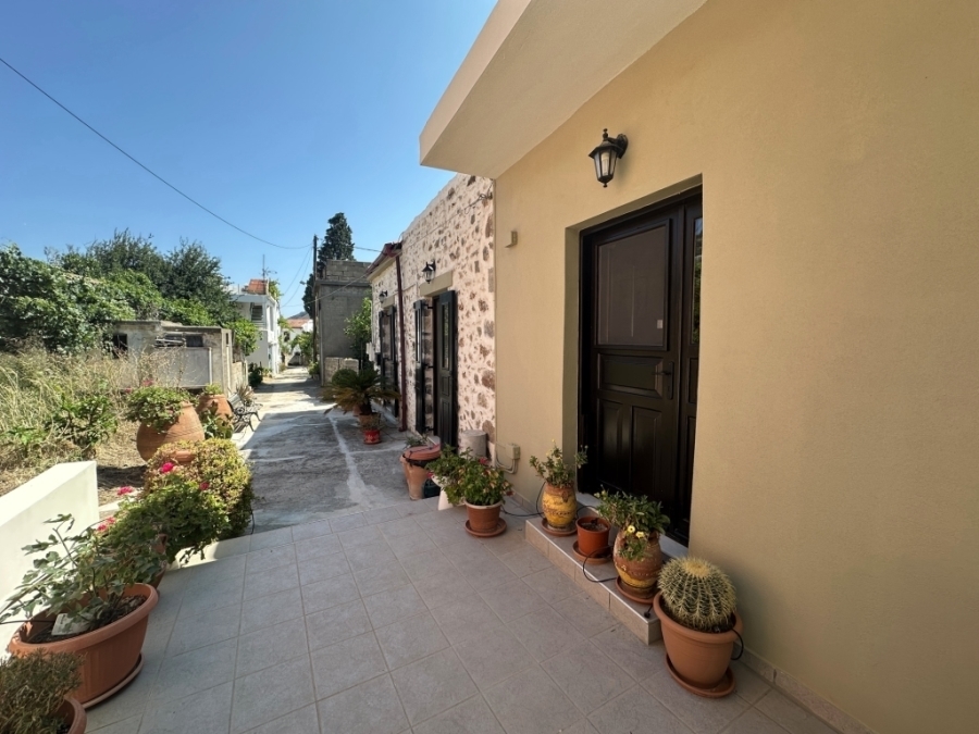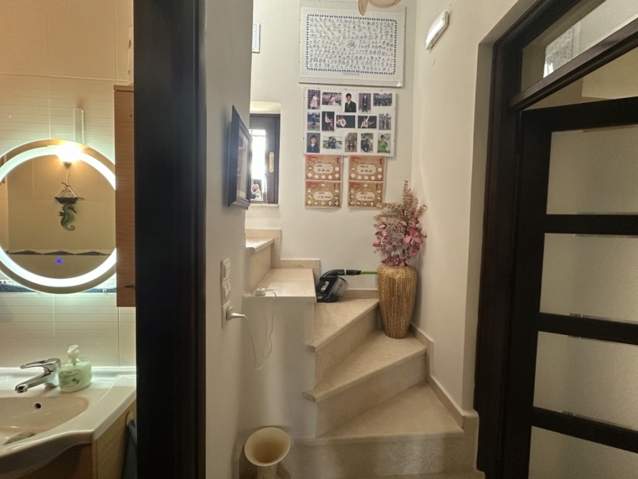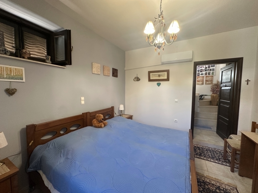 Renovated detached house of 127.65m2 on a plot of 295m2 is available for sale in the picturesque area of Latsida. It is located 12 km from Agios Nikolaos and the sea, as well as 55 km from the International Airport of Heraklion. The house opens to a hall with a dining room that leads to a separate fully equipped kitchen, a separate living room with a wood stove and two bedrooms, one of which has an internal bathroom. There is also another bathroom and an internal staircase that leads to the attic – storage room. It has wooden frames, solar, air conditioning and insulation on the terrace. Outside it has a comfortable terrace with bbq and offers views of the surrounding area of the village. There is a garden and an external storage room. Renovated in 2010, it combines traditional and modern elements, making it a very good investment choice for use as a permanent or holiday residence in a quiet area.