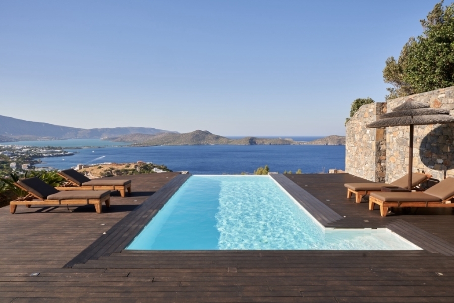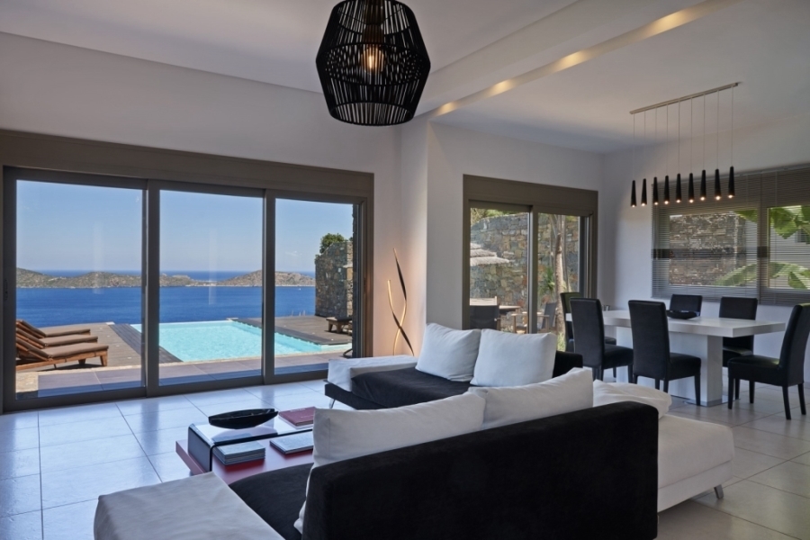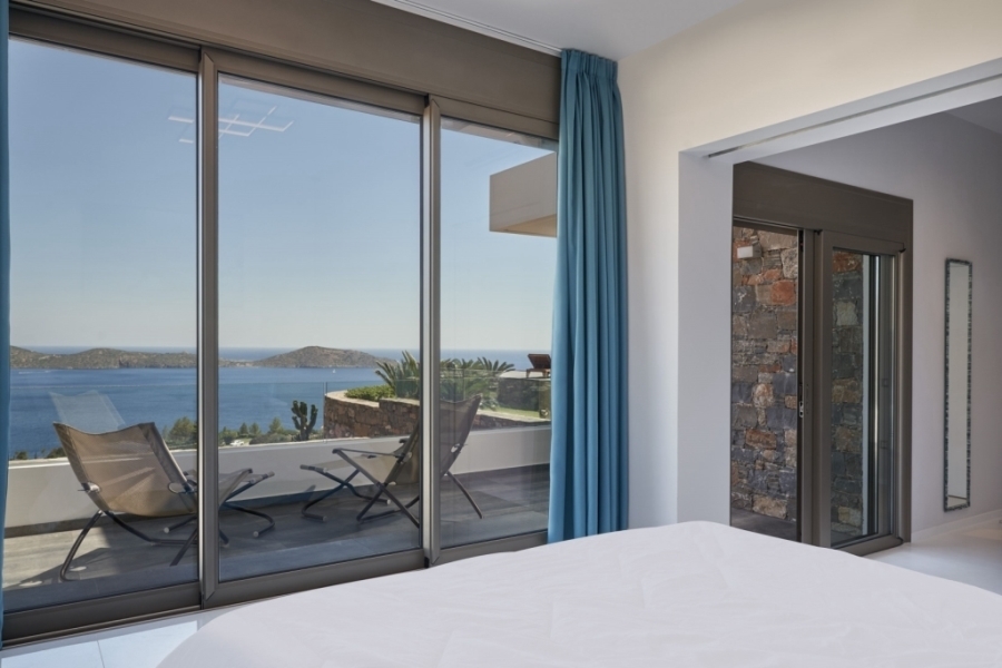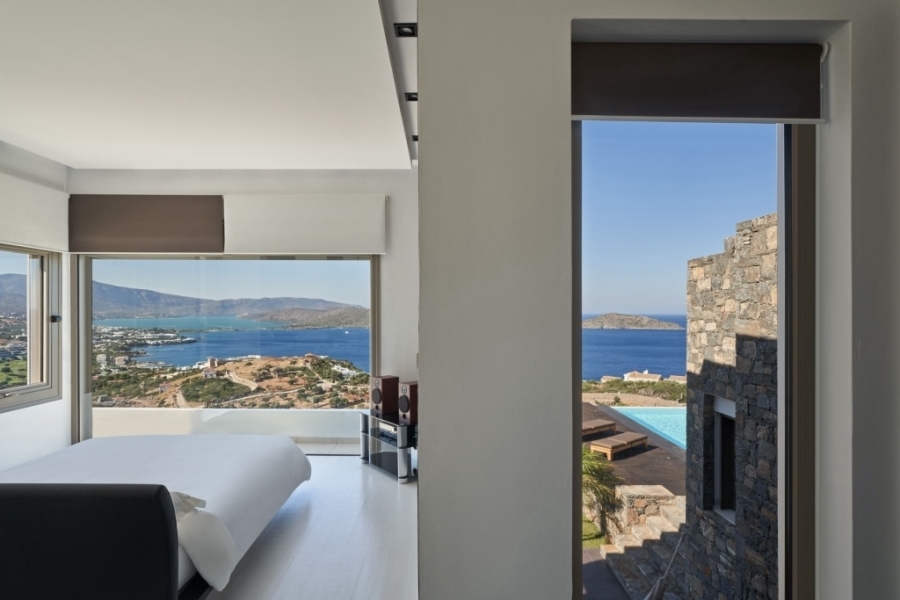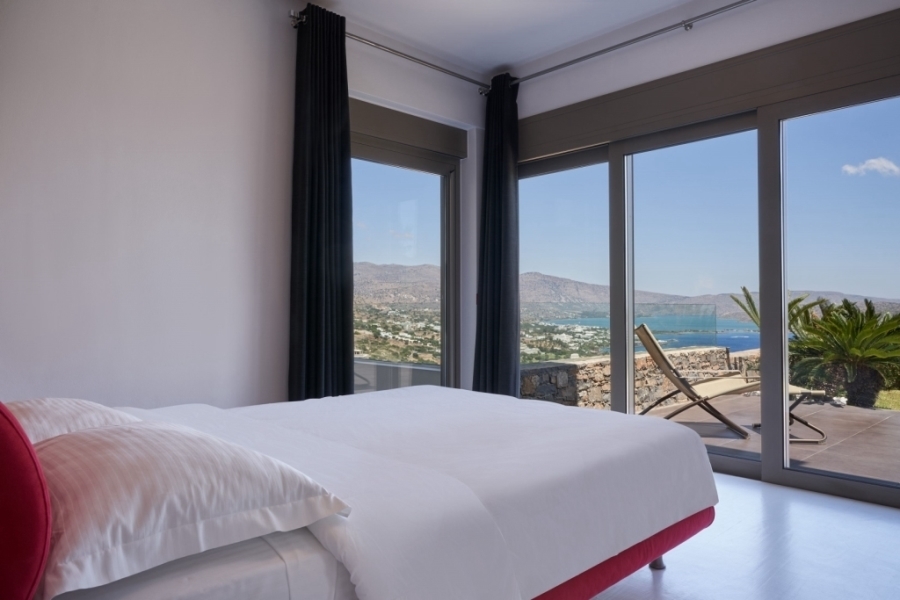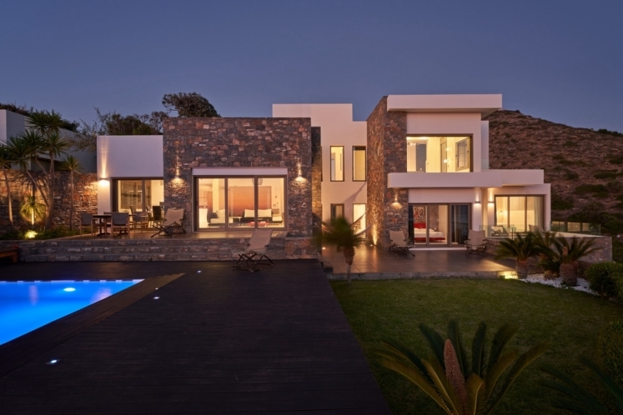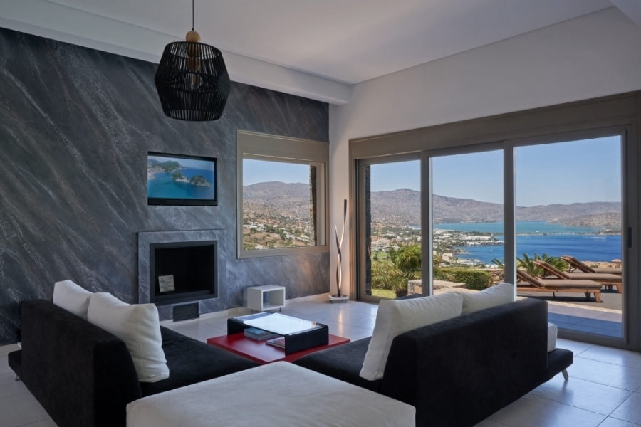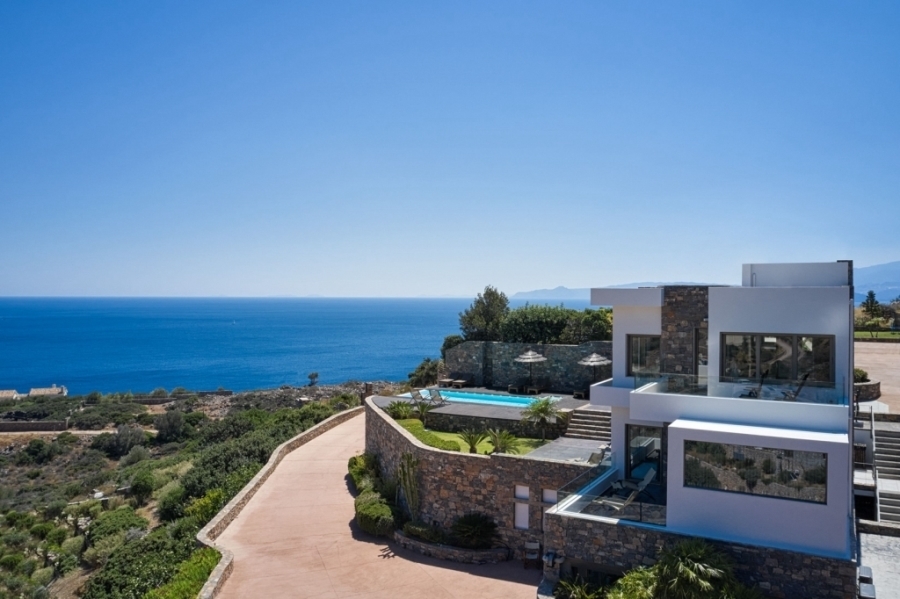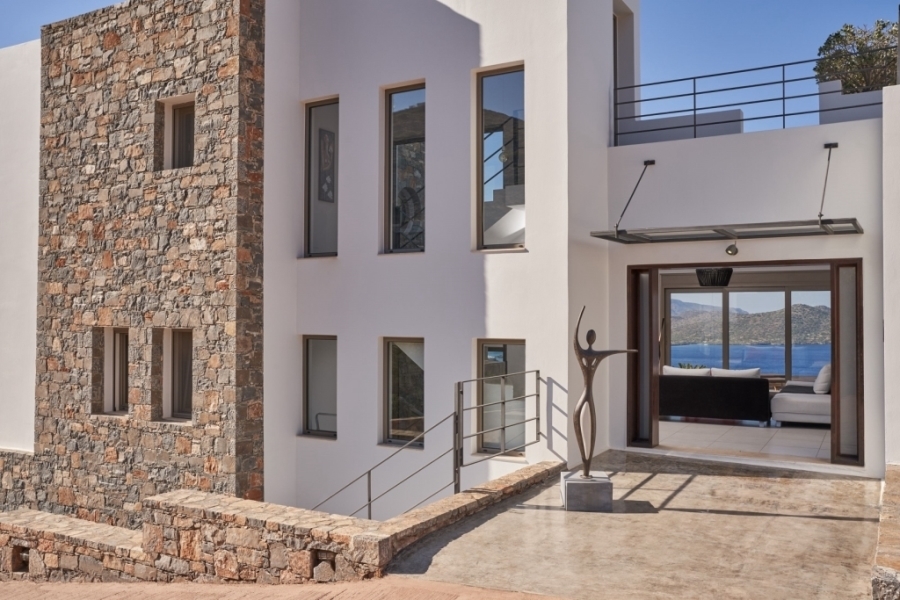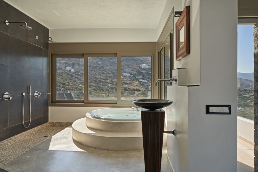 A Luxury 215m2 villa on a 5.500m2 plot overlooking the breathtake bay of Elounda is for sale 3 km from Elounda, 300m from the sea and 6km from Aghios Nikolaos in Eastern Crete. This truly sophisticated villa has a master bedroom loft with Jacuzzi, bathroom and dressing room. On the first floor there are two en-suite spacious bedrooms one with Jacuzzi tub and the other with a separate shower cabin. This elegant villa further comprises a spacious living room with fireplace and a loft with fully equipped kitchen. The ground floor has a playroom with private gym, video projector and interactive games. Further included is a CD system, LCD TV with DVD, Mp3, Wi-Fi internet and a laundry. Externally there is a large swimming pool, extensive terraces, garden, parking for two vehicles and glorious view across to Elounda and Mirabello Bays. This is a tremendous villa with a tasteful architecture, set in 2 acres of colorful gardens, ideal for holidays or permanent living.